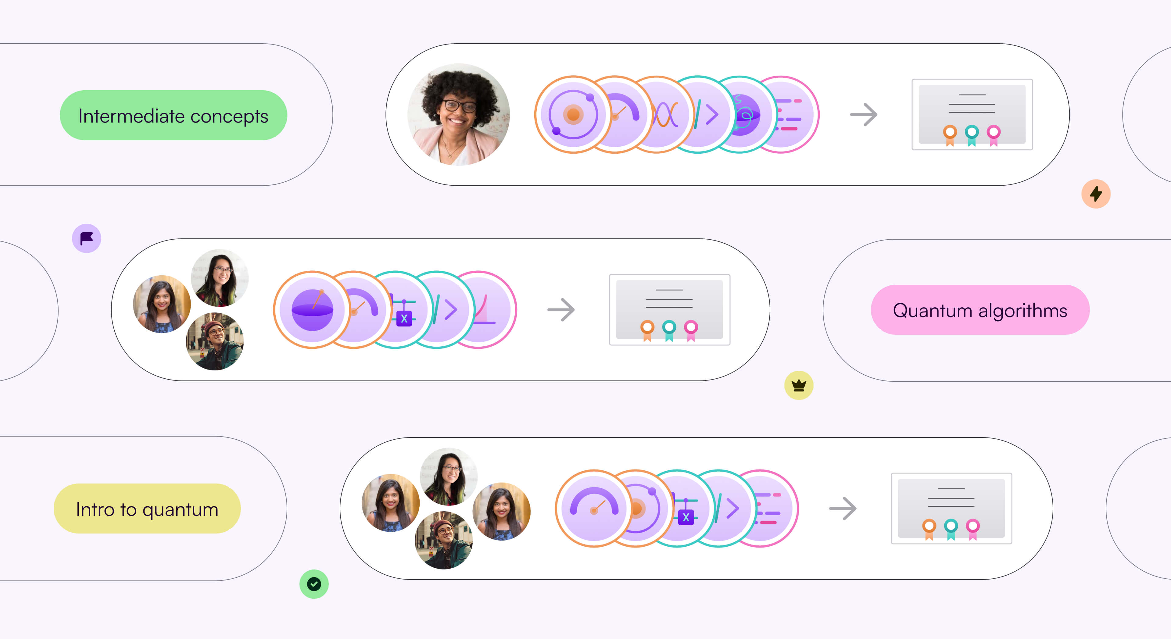 Now you can select the course modules that best align with the knowledge level and desired outcomes of your students. For example, some learners may want to focus on a high-level overview of quantum computing from the introduction and beginner sections of the course while others might be ready for Black Opal’s advanced modules on circuits, algorithms, and programming. Administrators set the specific skills to be completed: each learner then gets a focused experience within Black Opal that guides them to complete the modules they have been assigned.